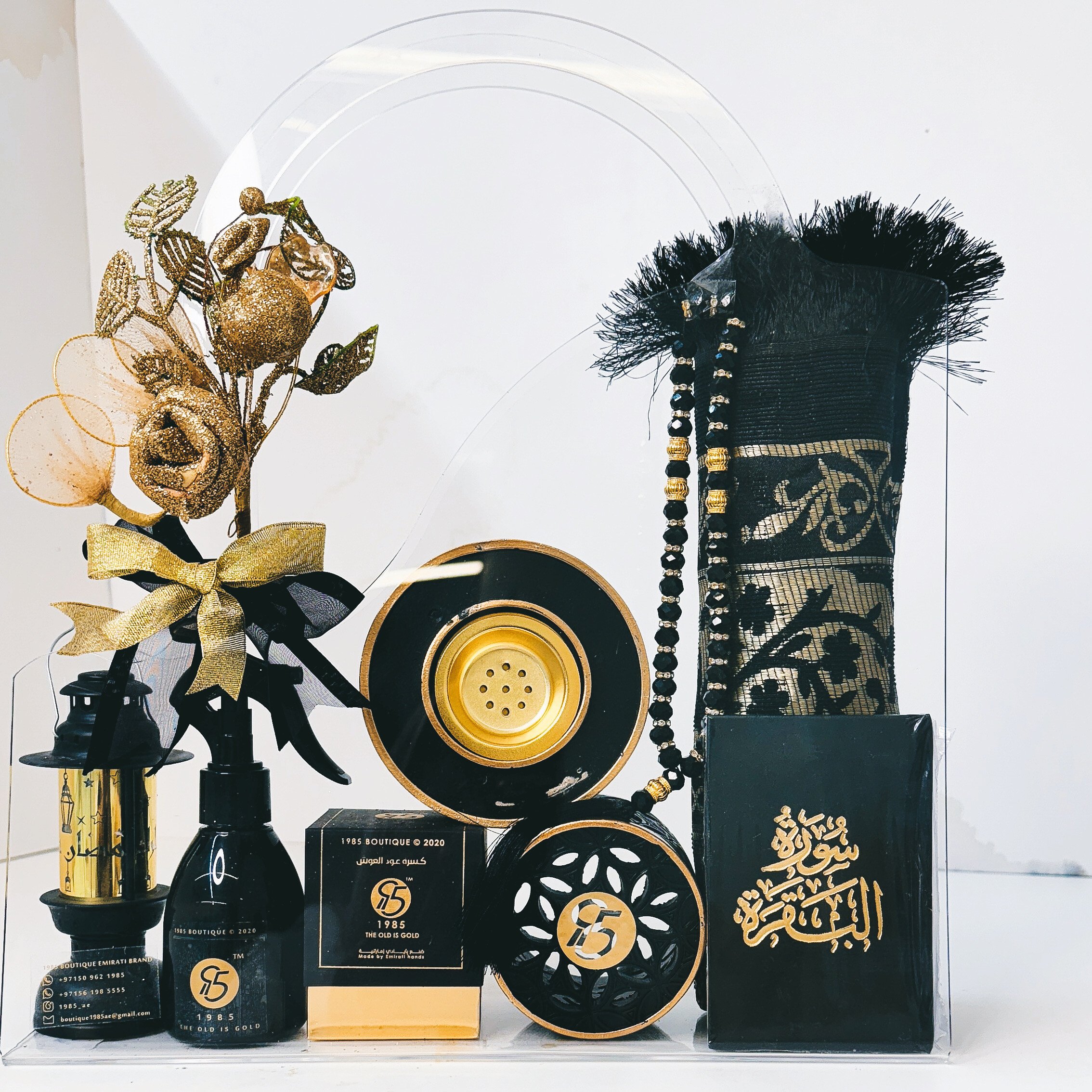 نقصة رمضان، 8 هدايا بمناسبة حلول شهر رمضان المبارك للغالين، بلون فخار ملكي الأسود والذهبي، مكونة من: