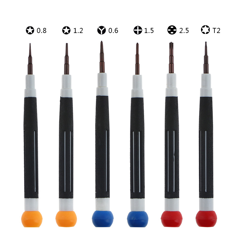 1 مكون من 6 مفكات بمقاسات مختلفة مصنوع من البلاستك الخفيف تستخدم لفك وتركيب