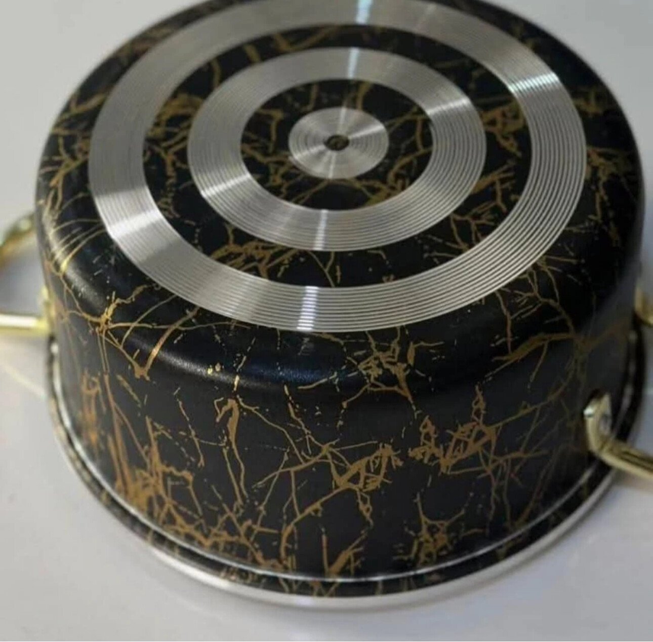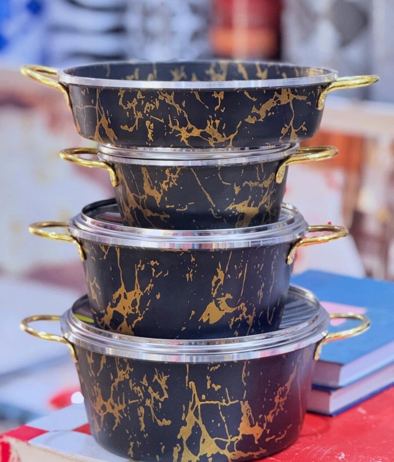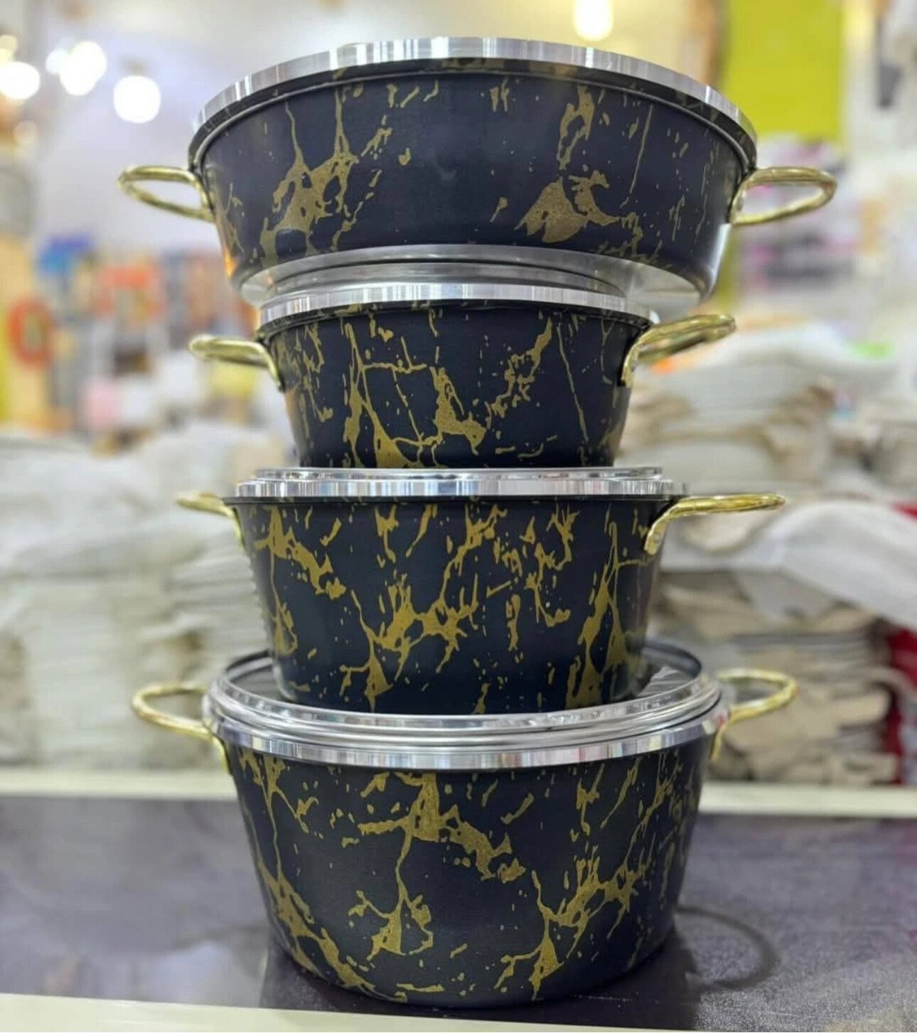 سيت جداري كرانيت 4 قطع الثقيل يحتوي على 3 جداري وطاوة ويحتوي على 3 قباقة بايركس ضد الحرارة واليدات ربل حديد يعمل بزيت وبدون زيت والقاعدة ليزرية