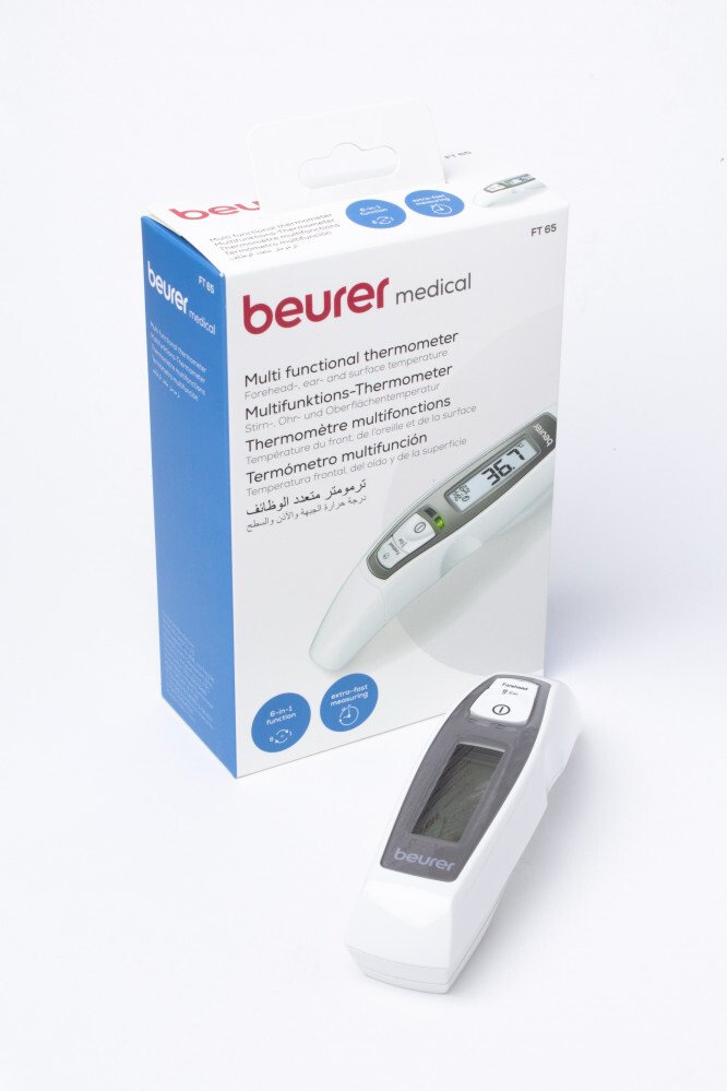 ترمومتر قياس درجة الحرارة متعدد الاستخدامات من Beurer FT65 هو جهاز متعدد الوظائف، يقيس درجة الحرارة الأذن والجبهة والأسطح.