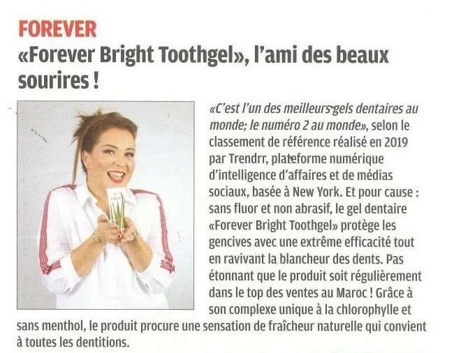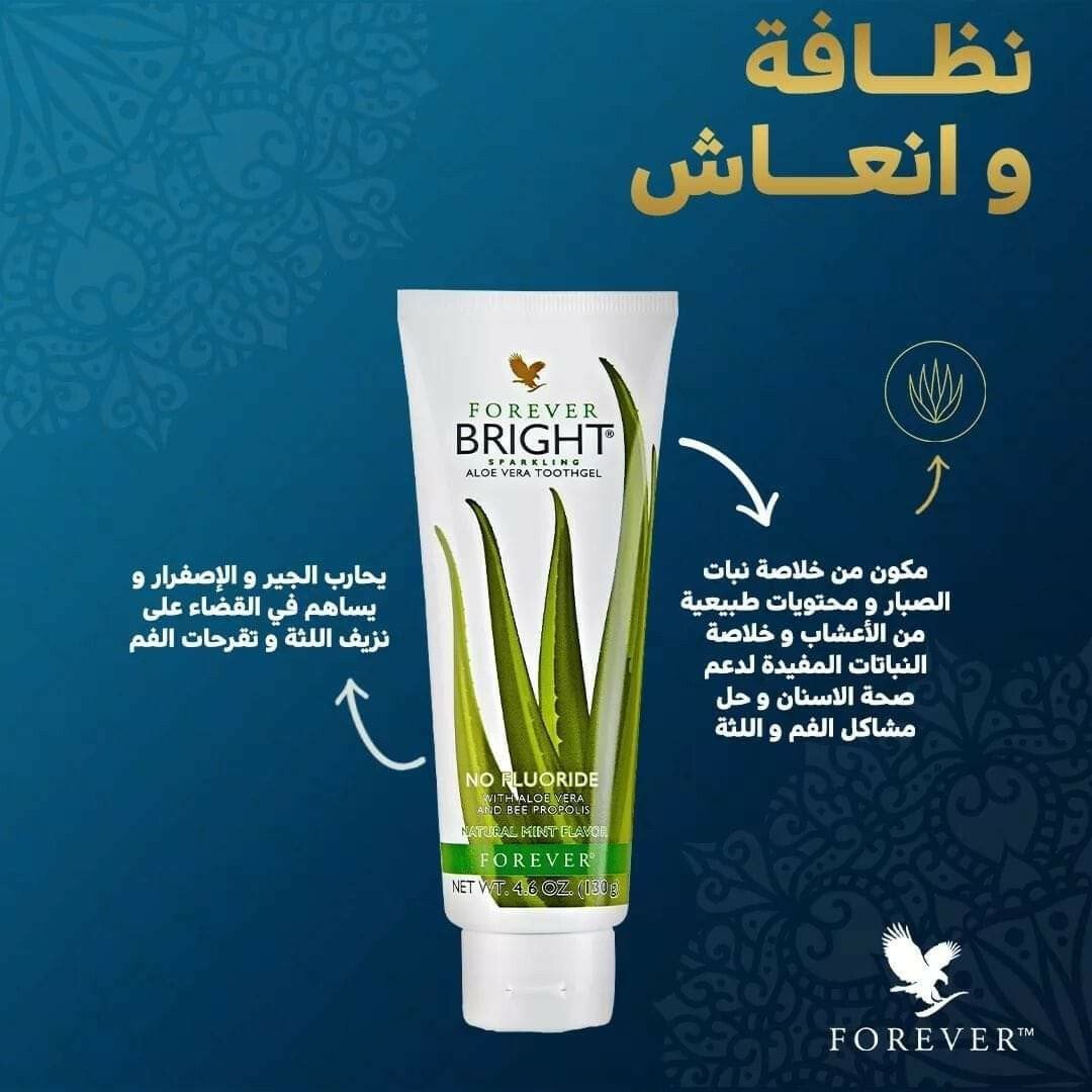 جل للأسنان، خال من الفلور و غير كاشط، يقوي مينا الأسنان و ينعش بياضها. مركبة من اليخضور، دون المنثول، يوفر شعورا بالنضارة الطبيعية، تركيبته المتكاملة من البروبوليس (العكبر) و الألوي تساعد على الحفاظ على نظافة و تطهير نبيت الفم مع انعاش اللثة و تسكين أعراض الألام.
