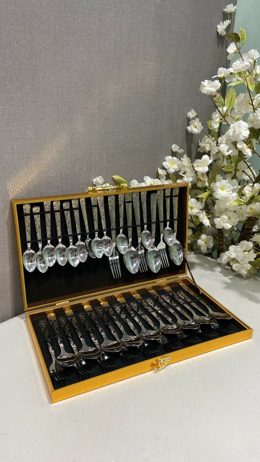 طقم ملاعق وشوك وسكاكين 36 قطعة مع صندوق خشب