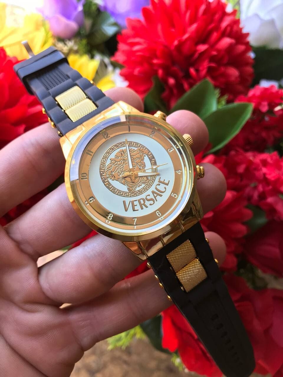 ساعه حريمي فرزتشي الدهبي الجديده الجسم معدن والاستيك من الجلد الطبيعى المريح لمعصم اليد مدعم بشرائح نحاسية موتور قوى