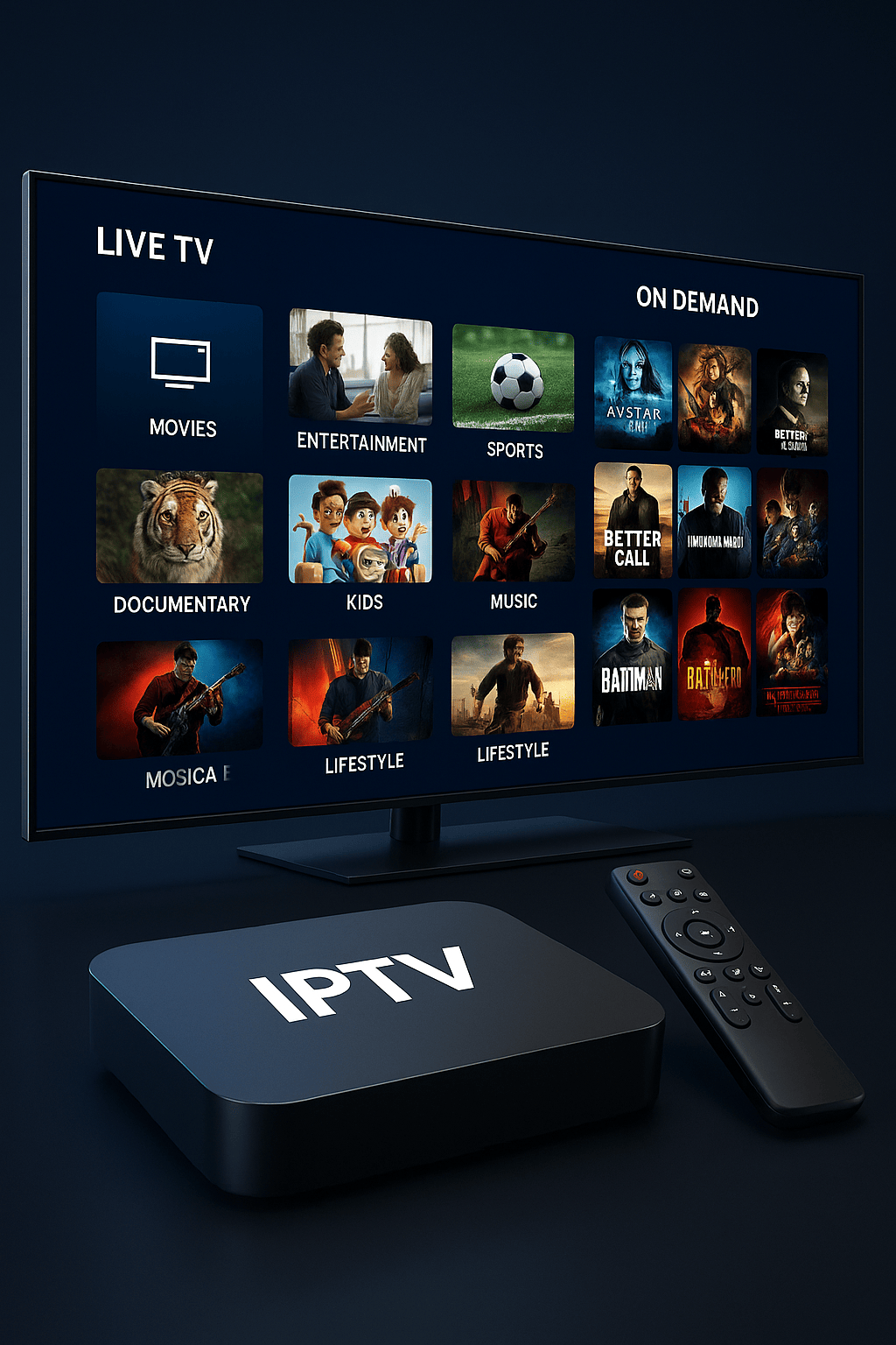 ( الأخبار ، والرياضة ، والأفلام ، والوثائقية , والبرامج الترفيهية )