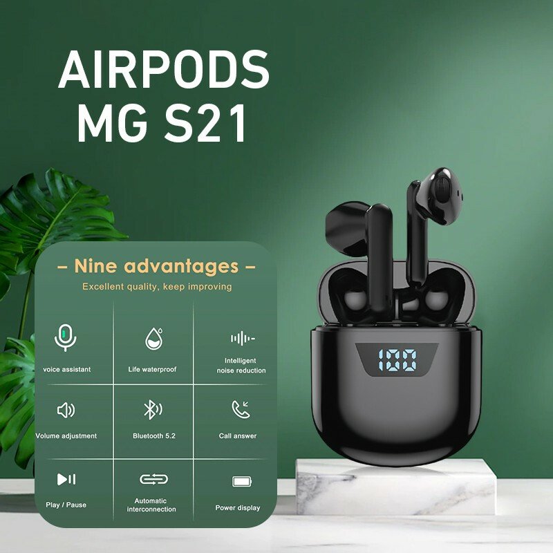 السماعة MG_S21 فيها كل المميزات شكلها مميز وانيق و صوتها عالي ونقي دا غير المايك علشان تعمل مكالماتك بسهولة وفيها شاشة ديجيتال بتبينلك السماعة مشحونة كام في الميه , والسماعة كمان تاتش وهتقعد معاك اكتر من 3 ساعات مشحونة