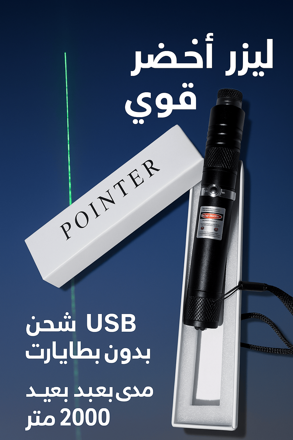 • يمكن شحن مؤشر الليزر هذا عبر منفذ USB. ما عليك سوى فك الغطاء الخلفي لمؤشر الليزر وتوصيله بجهاز USB!