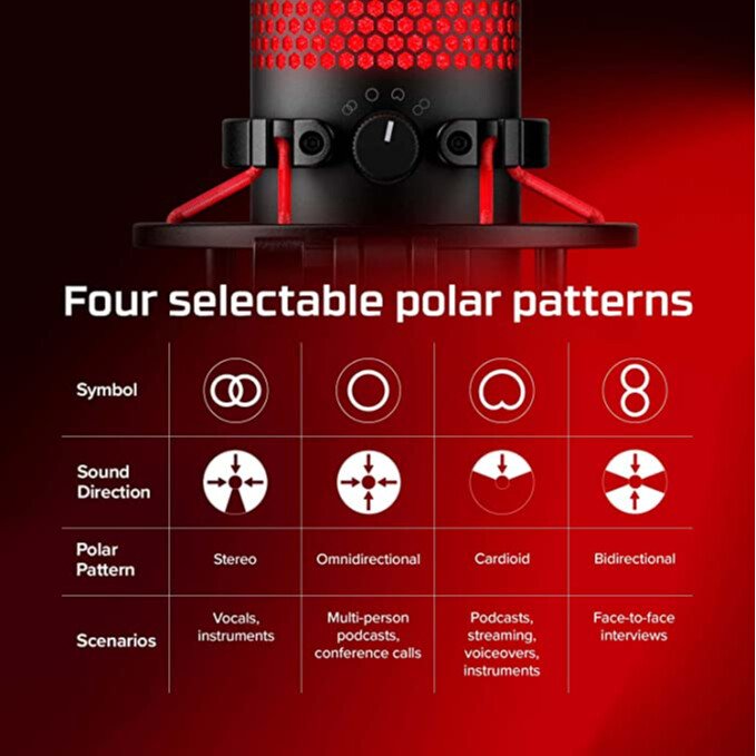 Hyperx Quadcast Usb Condenser Gaming Microphone Blk-Rd Hyperx-Micqc-Bk, Black