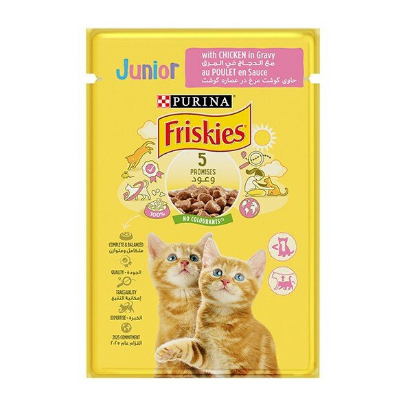 بورينا فريسكس قطع دجاج في المرق طعام رطب للكتين في كيس 85 جرام