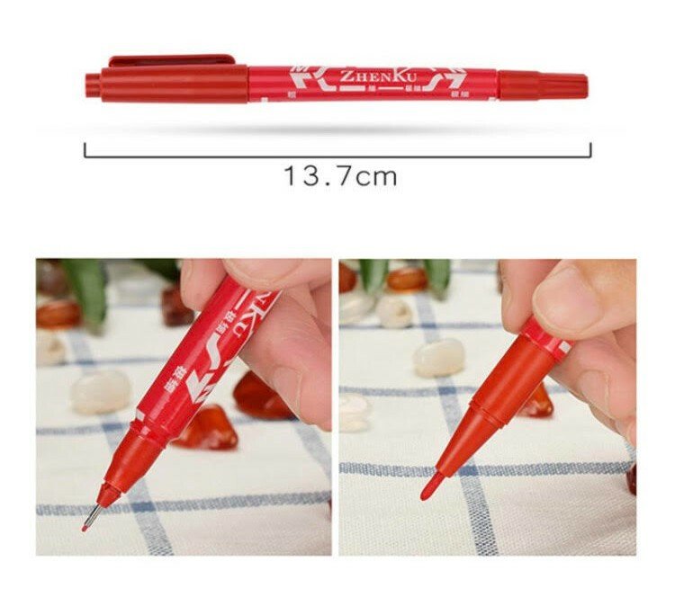 قلم للرسم احمر لا ينمسح بسهولة . يجب الانتظار حتى يجف تماما لنتائج افضل