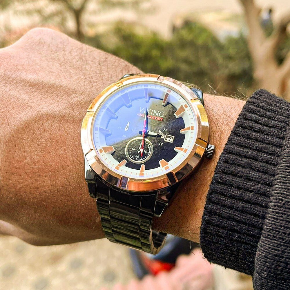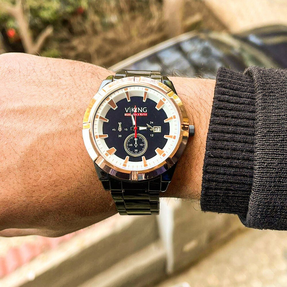 • عشان شياكتك تهمنا، وفرنالك ساعة فايكينج شيك و انيقة لايقة على كل ستايل، كلاسيك و عصرية بخامة ستانليس ستيل قوي و استيك مريح، اتميز بإطلالتك 👌