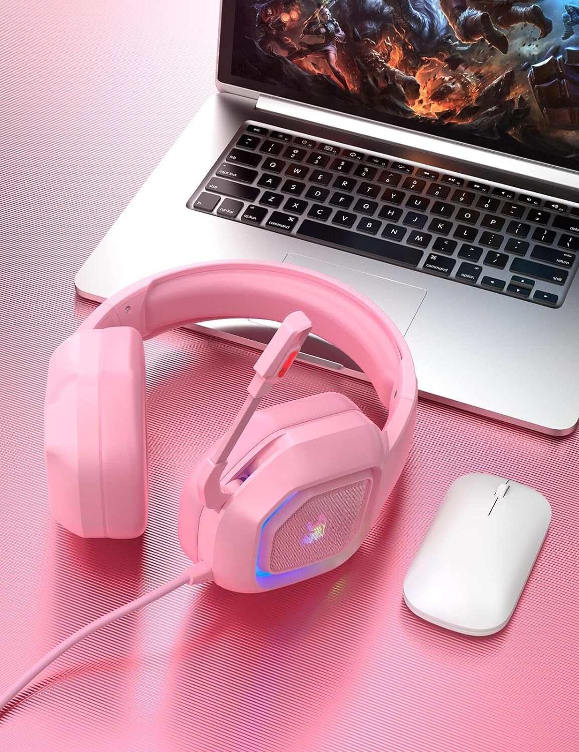 ZIUMIER Z30 الوردي الألعاب سماعة للPS4، PS5 و Xbox One، PC، السلكية الإفراط في الأذن سماعه مع الضوضاء الغاء الميكروفون، أدى تتدفق RGB الخفيفة، 7.1 الصوت المحيطي، غطاء للأذنين مريحة، زهري