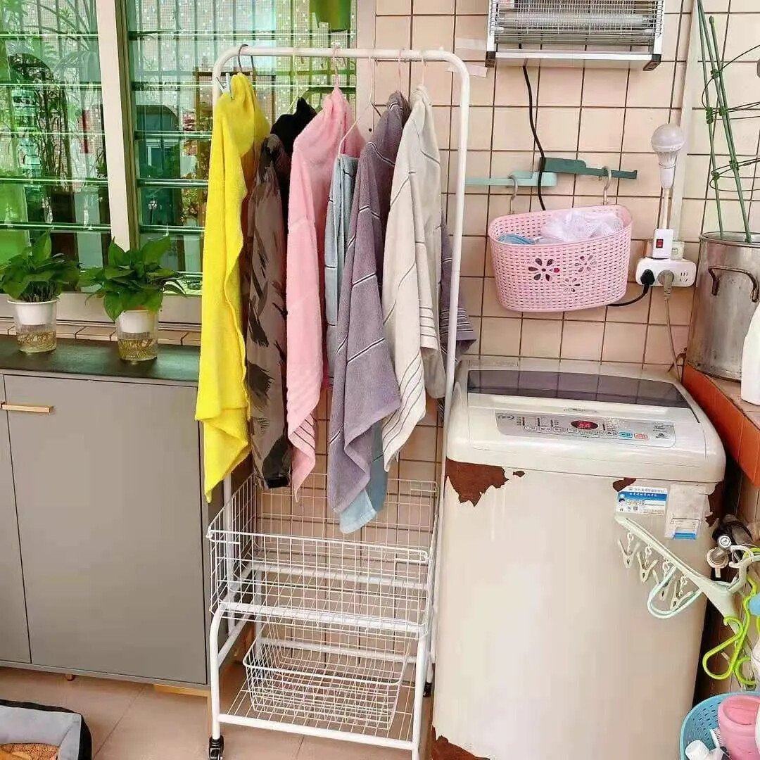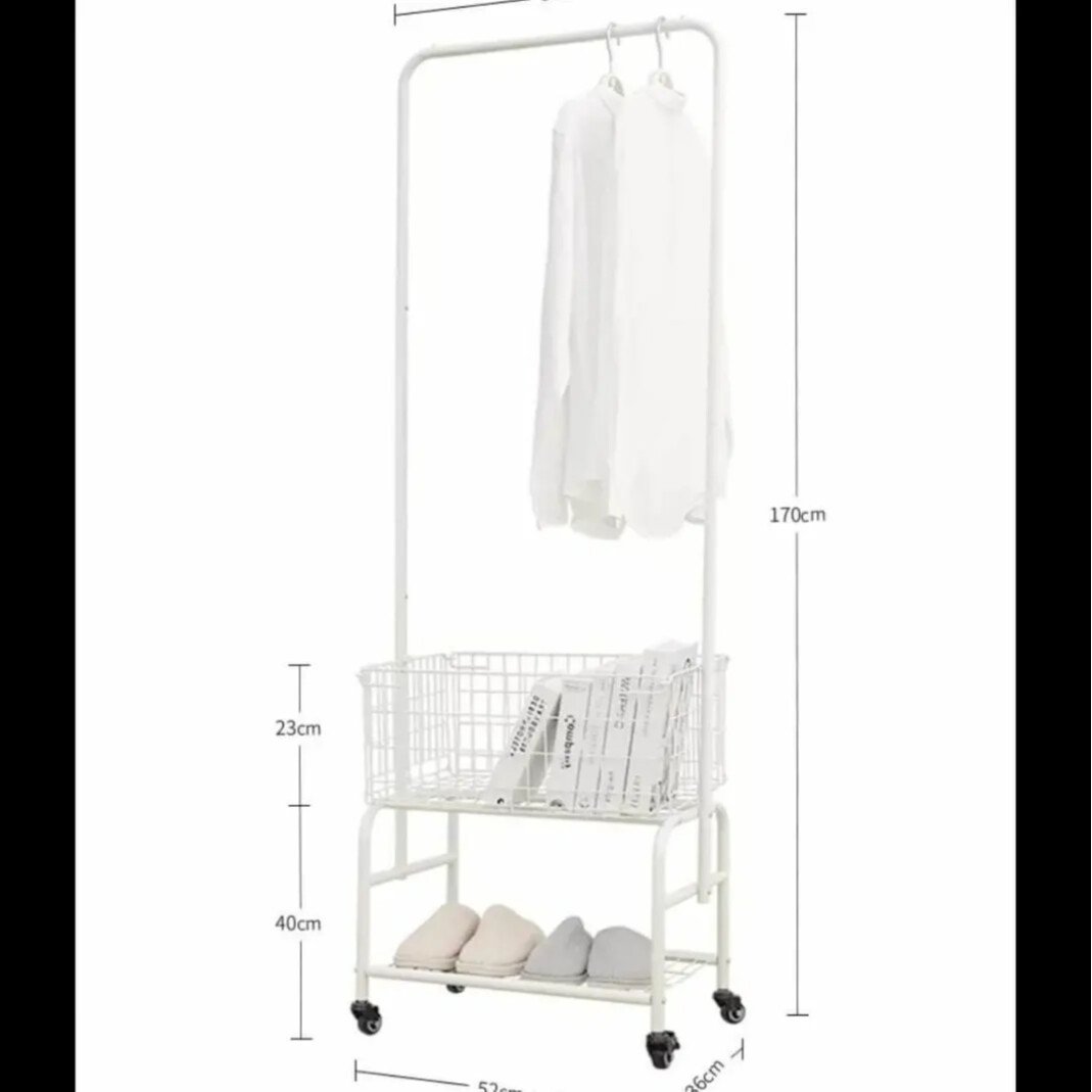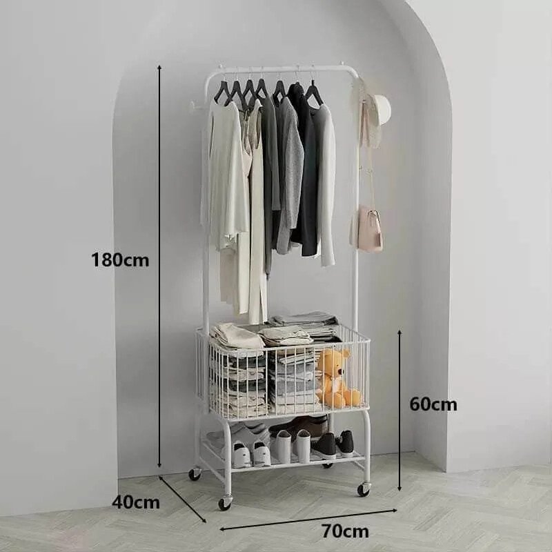 بنقدملك ستاند معدني لتعليق الملابس يحتوي على سلة ورفوف سفلية 😍