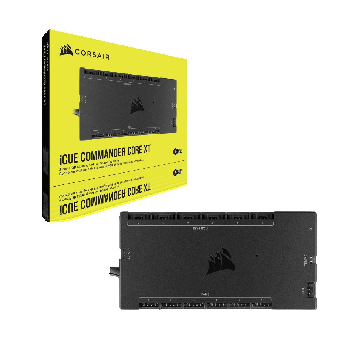 إن COMMANDER CORE XT أكثر من مجرد وحدة تحكم في الإضاءة والمروحة لما يصل إلى ستة مراوح. يمكن توسيعه لمراقبة درجات الحرارة (تم تضمين مستشعرين لمراقبة درجة الحرارة) وحتى ربطه بأجهزة iCUE الأخرى مثل LS100 Lighting Strips أو RGB LED Lighting PRO Expansion kits.