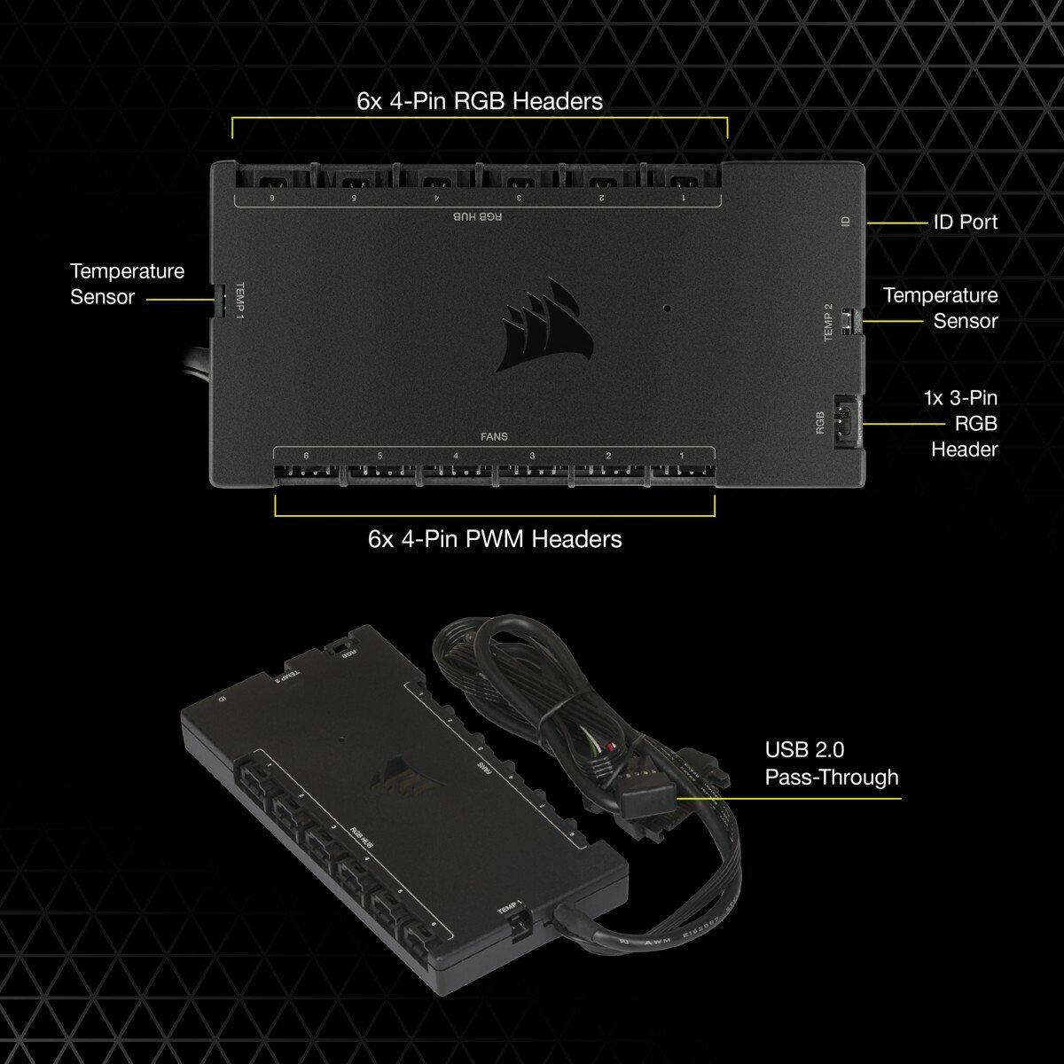 وصف Corsair iCUE Commander CORE XT Smart RGB Lighting and Fan Speed Controller، Controls Up to 6 PWM Fans، USB 2.0 Pass-Through Port، Black | CL-9011112-WW