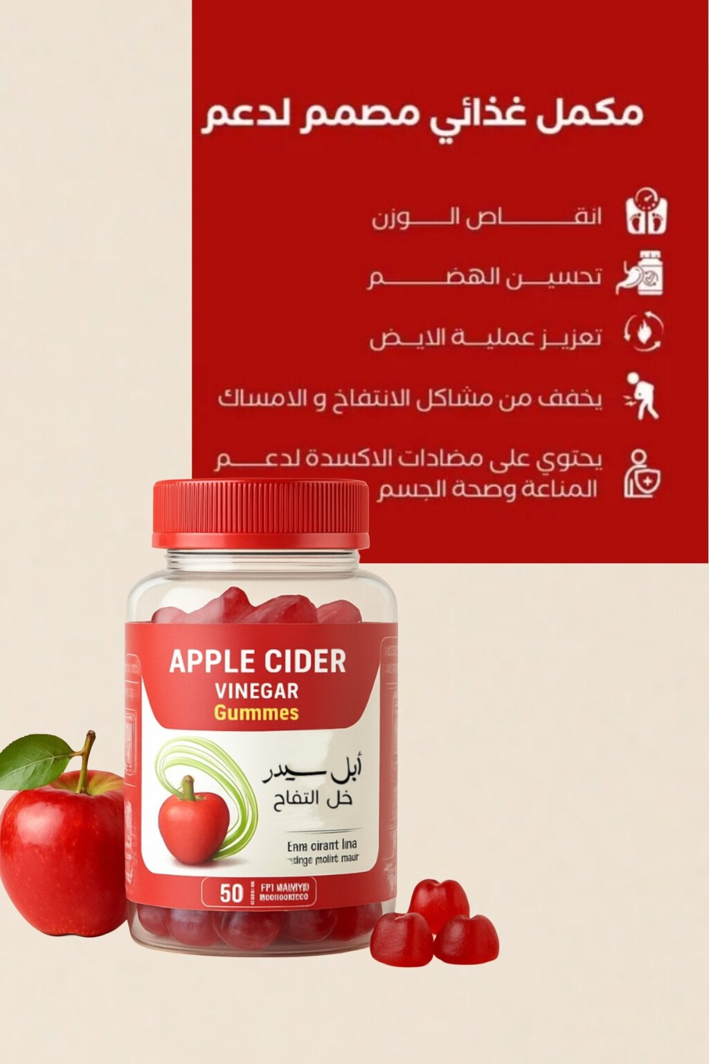 حققي أهدافك مع أبل سيدر خل التفاح، أفضل مكمل غذائي مصمم لدعم إنقاص الوزن، تحسين الهضم، وتعزيز عملية الأيض. تحتوي هذه الحبوب اللذيذة على خلاصة خل التفاح الطبيعي المعروف بقدرته على سد الشهية، تقليل الانتفاخ، وتحفيز حرق الدهون، مما يجعله خيارًا مثاليًا لمن يبحثون عن نمط حياة صحي.