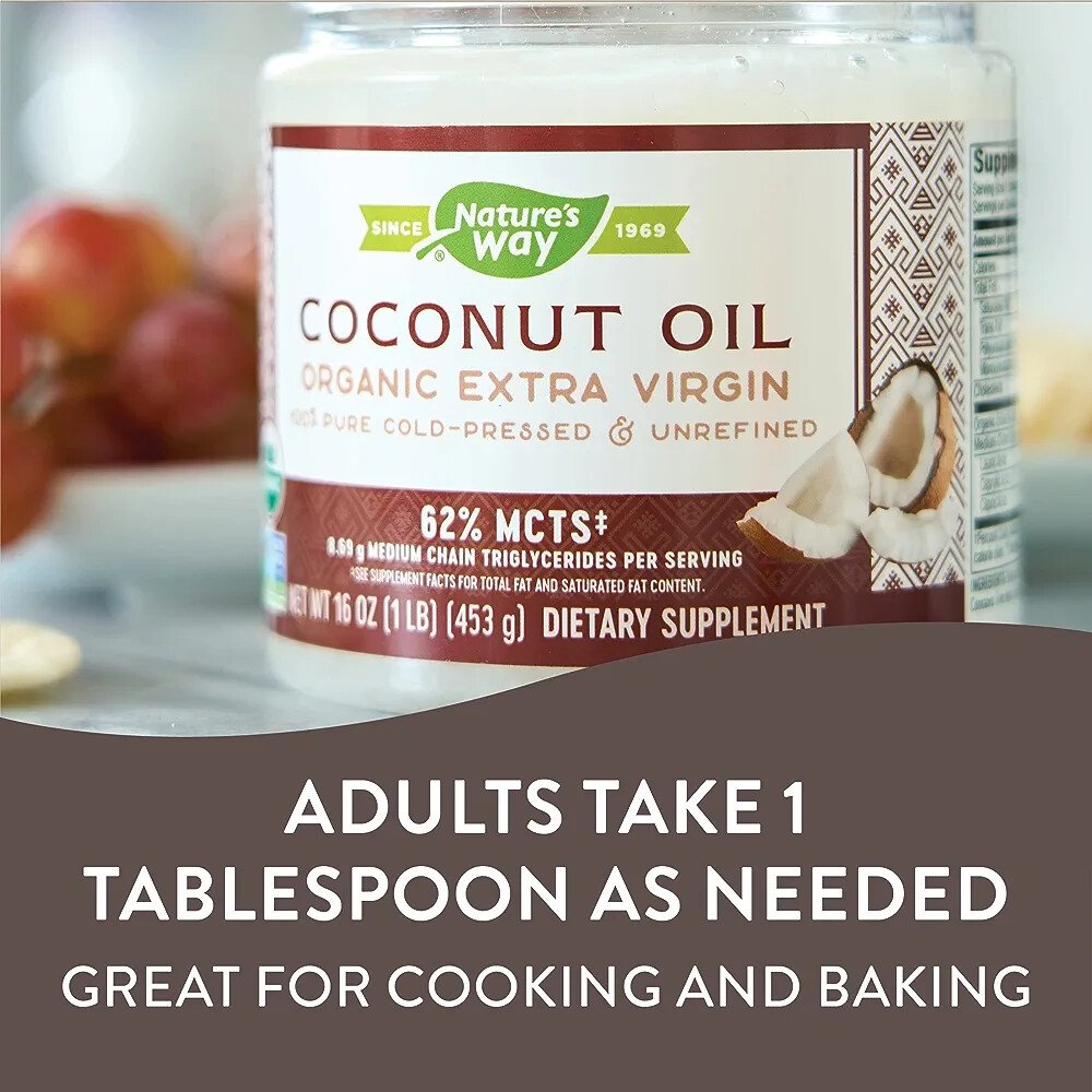 مصدر ممتاز: زيت عضوي، بكر ممتاز، غير مكرر وغير مبيض، مستخلص من ثمار جوز الهند غير المعدّلة وراثيًا ، خالي من الهكسان. الدهون الثلاثية متوسطة السلسلة بنسبة 62%: 8.7 غرام من الدهون الثلاثية متوسطة السلسلة (أحماض اللوريك والكابريليك والكابريك) كل وجبة.