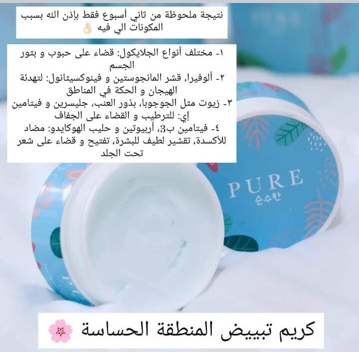 كريم بيور بمكونات فعاله تعمل على تفتيح وازالة البقع من مكان تحت الابط ومن المناطق الحساسه خلال مده قصيره