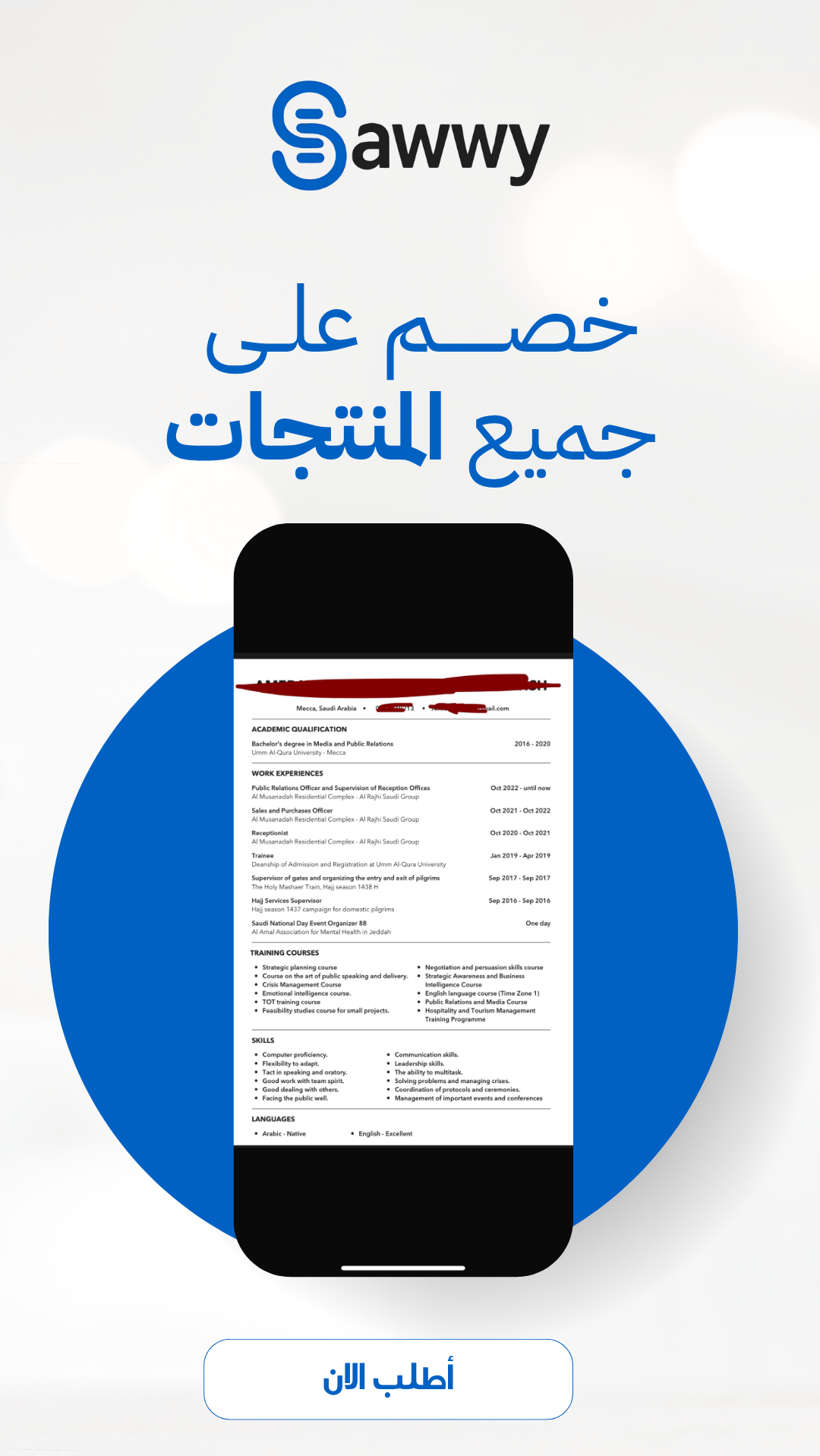 • تبرز خبراتك، مهاراتك، وإنجازاتك بشكل واضح ومؤثر.