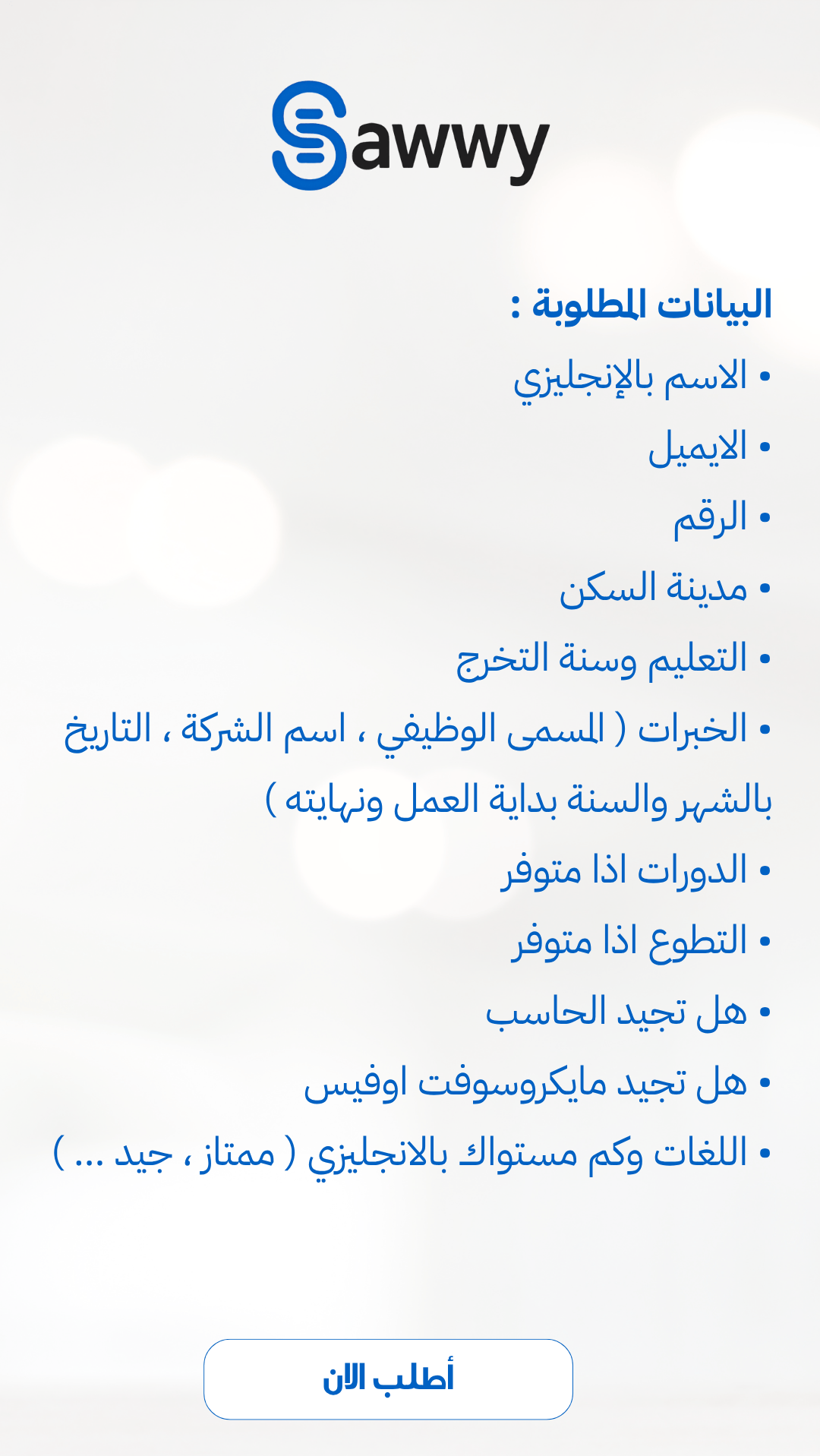 يرجى إرسال بياناتك عبر الواتساب ليتم إعداد سيرتك الذاتية بصيغة PDF جاهزة للاستخدام والتقديم.