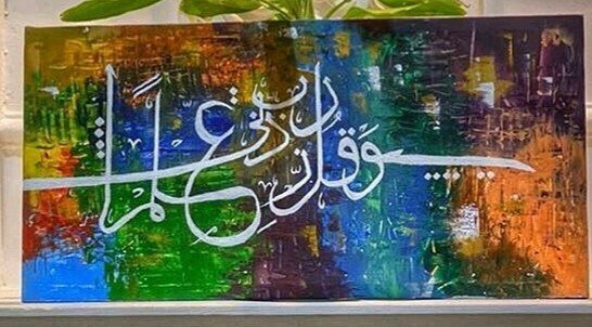 لوحة تجريدية بكتابة اية ( وقل ربي زدني علما)