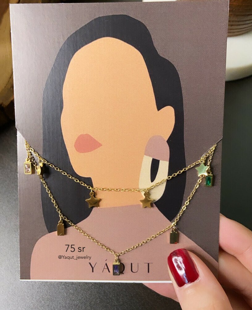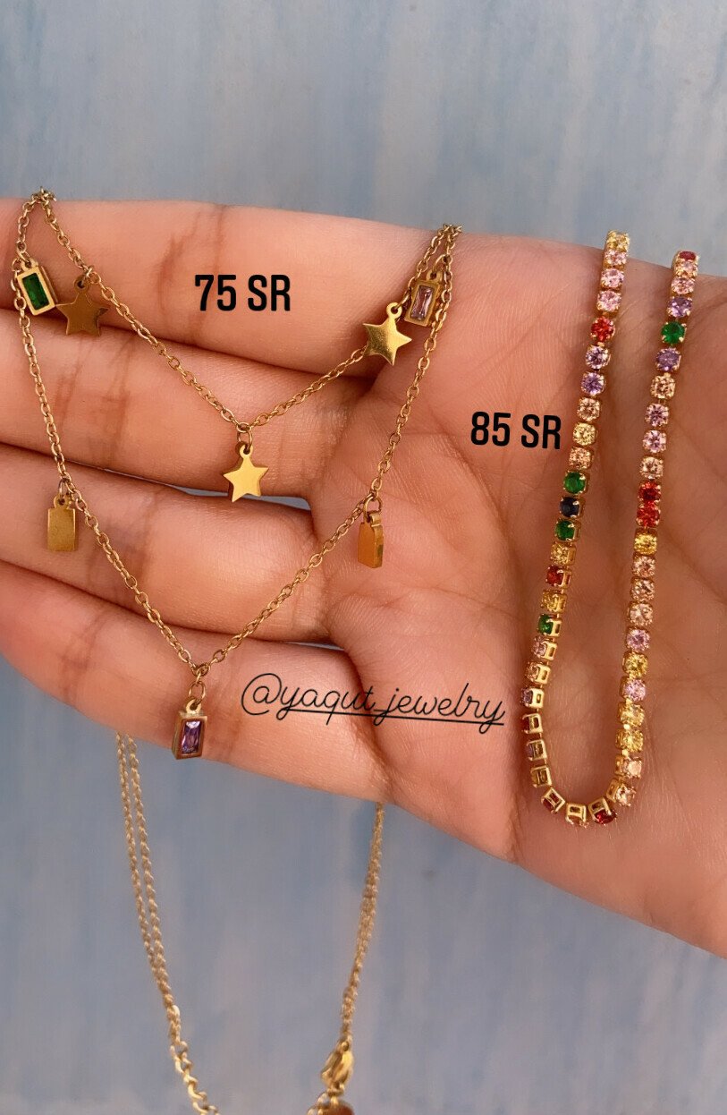 سلسال بتصميم نجوم + مستطيلات مرصعه بزركون,